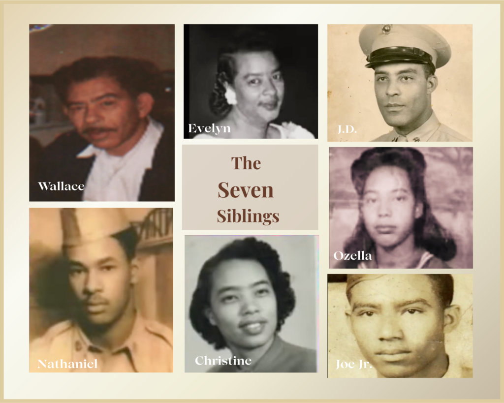We are their descendants, from their seven children: Wallace, Evelyn, J.D., Ozella, Joe, Christine, Nathaniel.